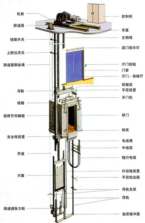 強(qiáng)制驅(qū)動(dòng)電梯:用鏈或鋼絲懸吊的非摩擦方式驅(qū)動(dòng)的電梯