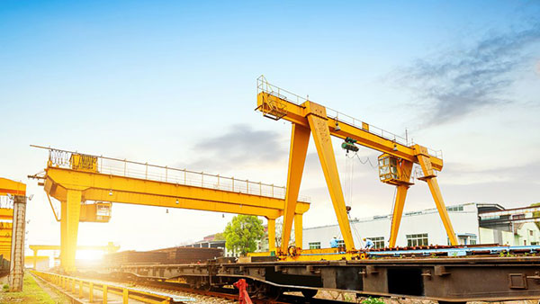 門式起重機:其橋架梁通過支腿支承在軌道上的起重機