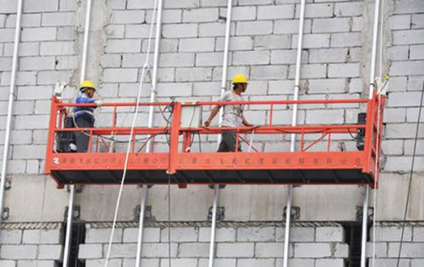懸掛裝置架設于建筑物或構筑物上,起升機構通過鋼絲繩驅動平臺沿里面上下運行的非常設懸掛接近設備。