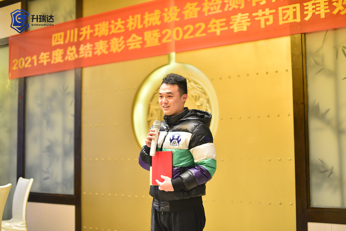 ? ? ? ? 公司的不斷發展離不開優秀的員工,在本次團拜會上,升瑞達公司對2021年度優秀員工進行了表彰,并頒發證書以資獎勵;獲獎員工也進行了發言,表示在新的一年里將不斷提升自己,為公司發展、自身發展而努力。隨著各個獎項的頒發不斷掀起年會的高潮,各級領導與員工親情互動以及激動人心的頒獎活動,讓吶喊聲、掌聲、歡呼聲一直在會場上蕩漾。
