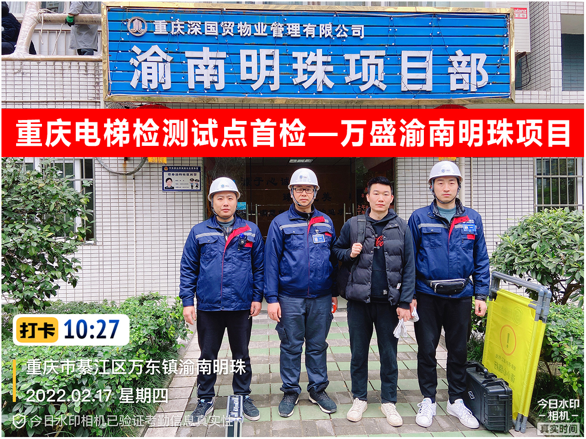 2022年開局之年,繼四川攀枝花電梯檢測試點首檢后,升瑞達公司憑借品牌優勢、技術優勢、人才優勢、區域優勢,圓滿完成了在重慶電梯檢測試點首檢“綦江橙琿·隨園”、“萬盛蘭喬圣菲”和“渝南明珠”三個項目近百臺電梯,為升瑞達在重慶電梯檢測試點工作開了一個好頭。