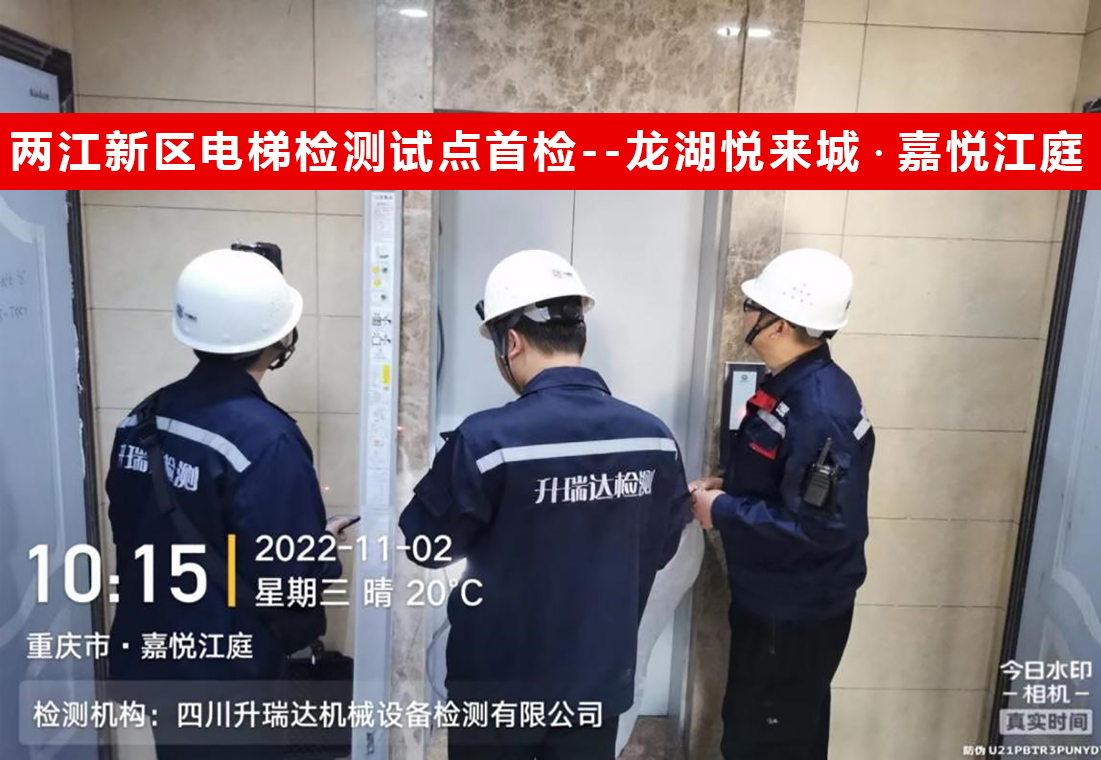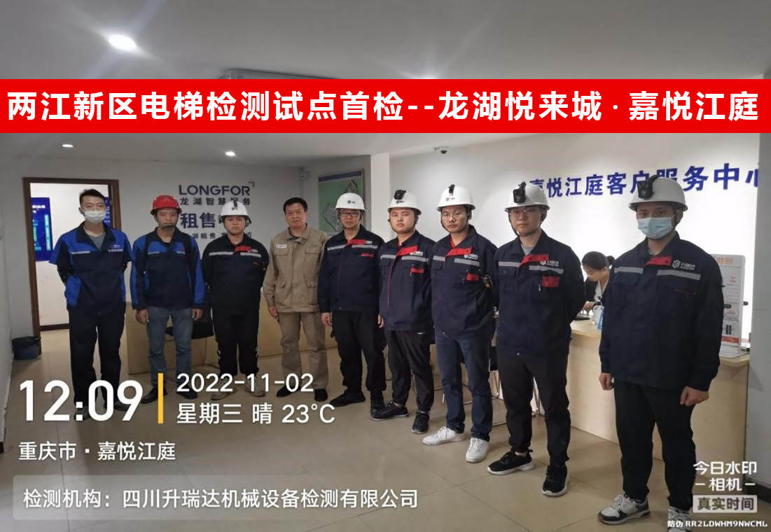 ? ? ? ? 2022年11月,四川升瑞達機械設備檢測有限公司重慶分公司憑借品牌優勢、技術優勢、人才優勢、區域優勢,圓滿完成了在重慶兩江新區電梯檢測試點首檢龍湖物業“嘉悅江庭”項目電梯,為升瑞達開啟與龍湖物業電梯檢測長期合作新局面。