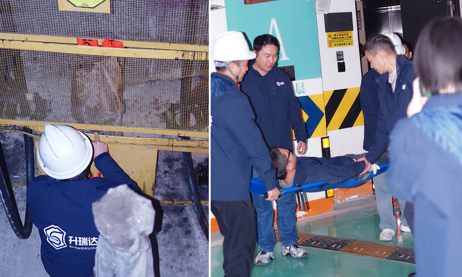 ??????? 10 時 10 分,檢測人員到達電梯底層指定位置觸發(fā)報警,工作負責人確認后啟動救援程序,各小組迅速就位,并通知物業(yè)協(xié)同。指揮長接報后,公司特種設備事故應急救援領導小組立即啟動預案,指揮部成員到位并通知物業(yè)配合,相關領導和專家也迅速趕赴現(xiàn)場。